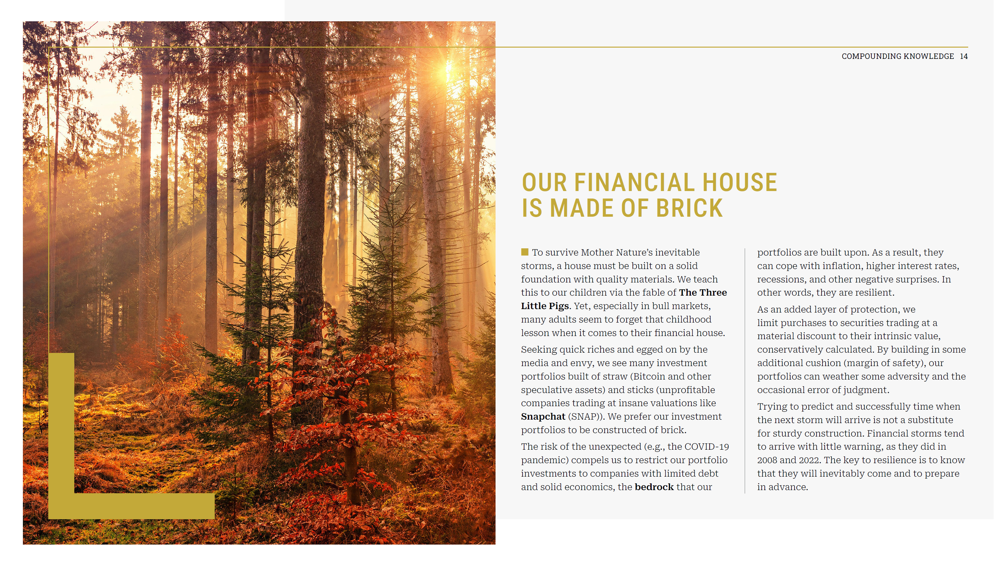 One thing that is common across both our top performers and contractors is that they are well-capitalized businesses with durable competitive positions in their respective markets. That is by design. Companies that operate from a position of strength are better positioned to navigate market downturns and often emerge in a stronger position as competitors go bankrupt or are acquired. Moreover, many of our portfolio companies actively repurchase their own stock. Lower stock prices allow them to repurchase a greater percentage of their outstanding shares, leaving remaining shareholders with a larger claim on future cashflows. This is a powerful and tax-free mechanism for long-term value creation.